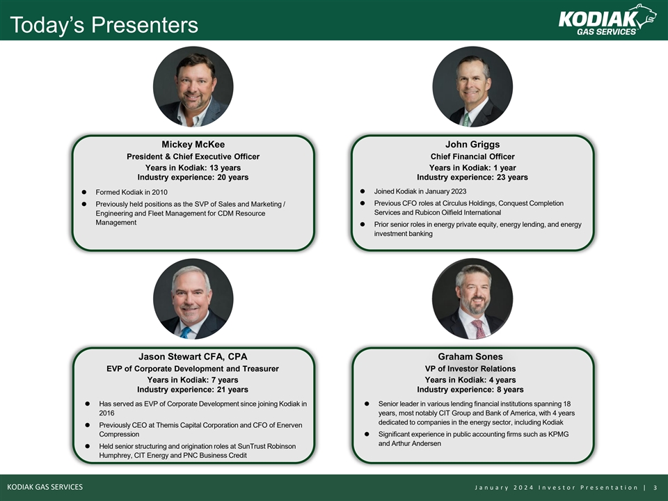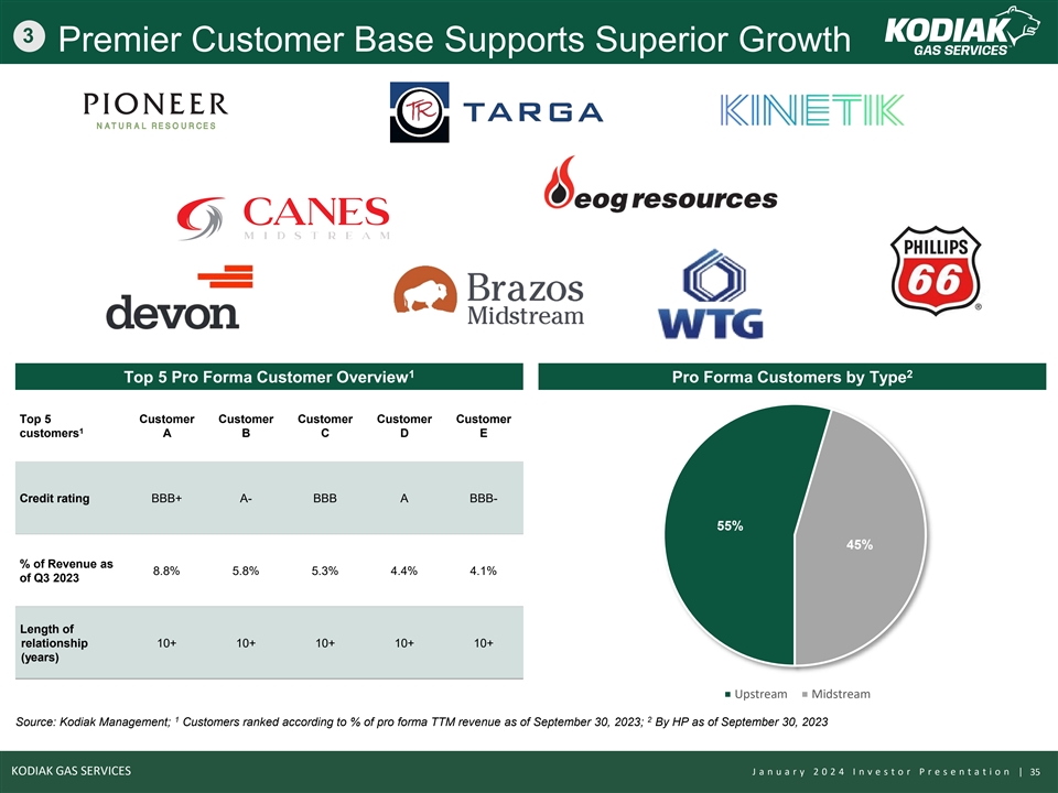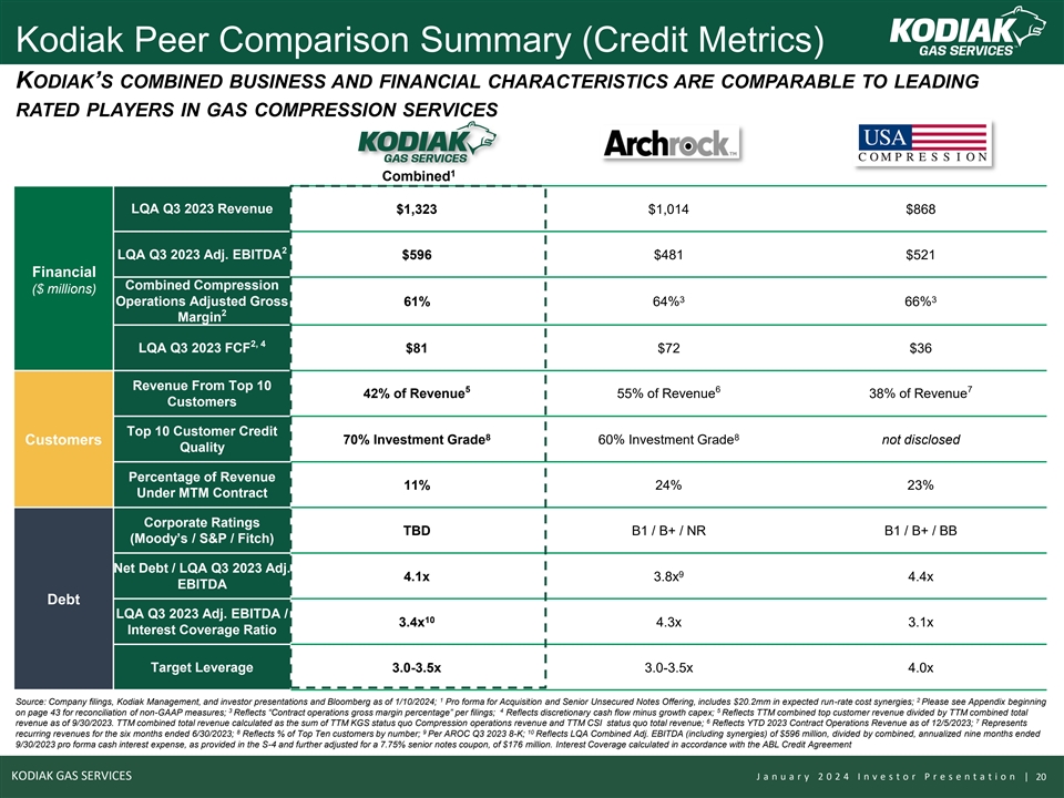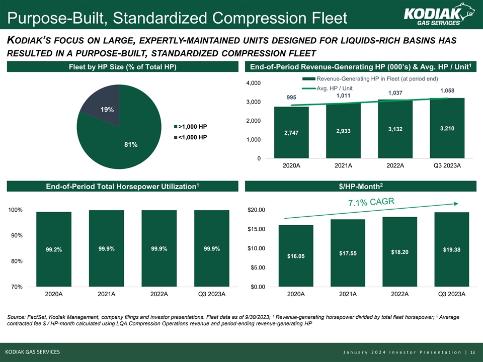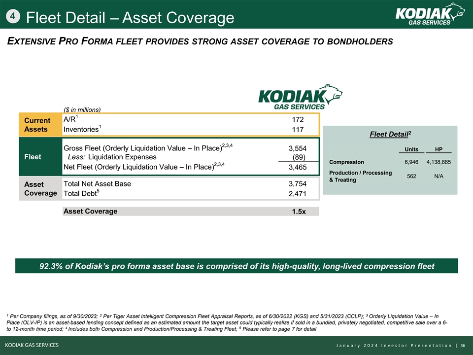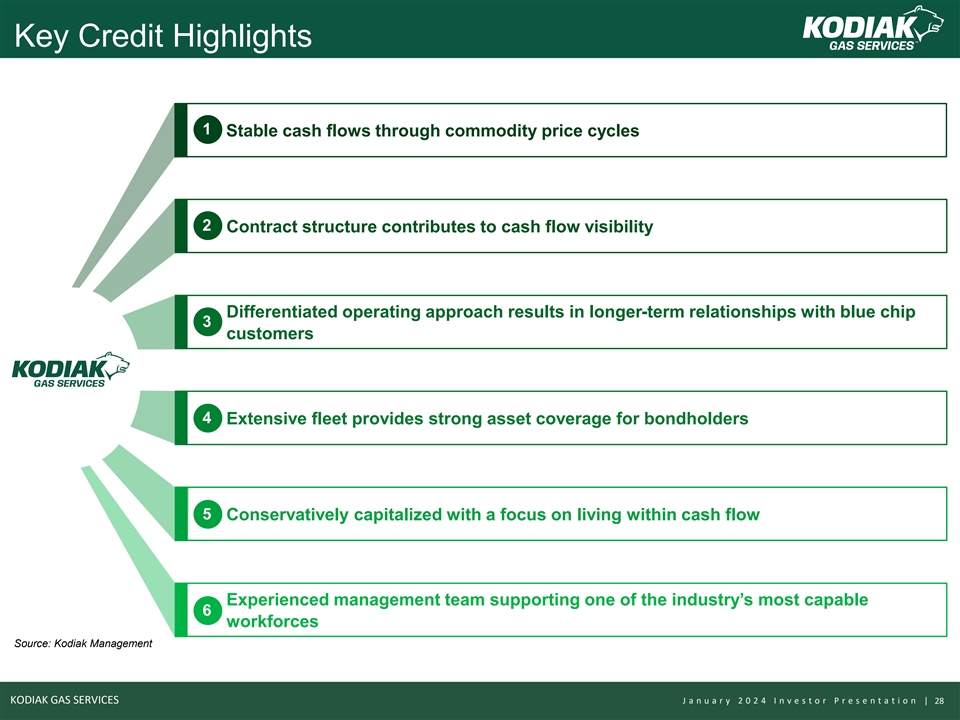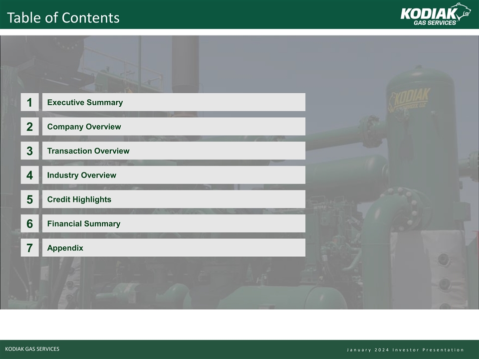 Table of Contents Executive Summary 1 Company Overview 2 Transaction Overview 3 Industry Overview 4 Credit Highlights 5 Financial Summary 6 Appendix 7 KODIAK GAS SERVICES J a n u a r y 2 0 2 4 I n v e s t o r P r e s e n t a t i o n